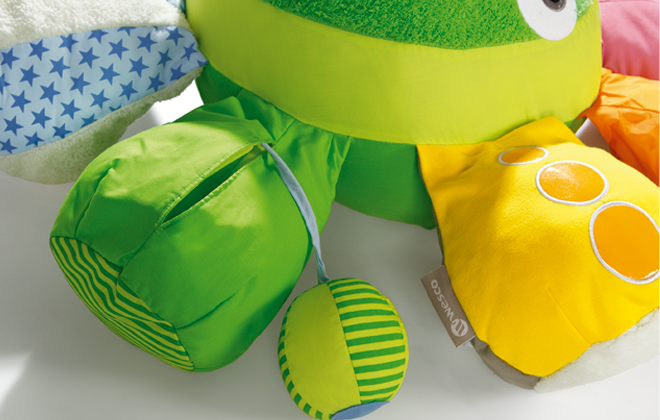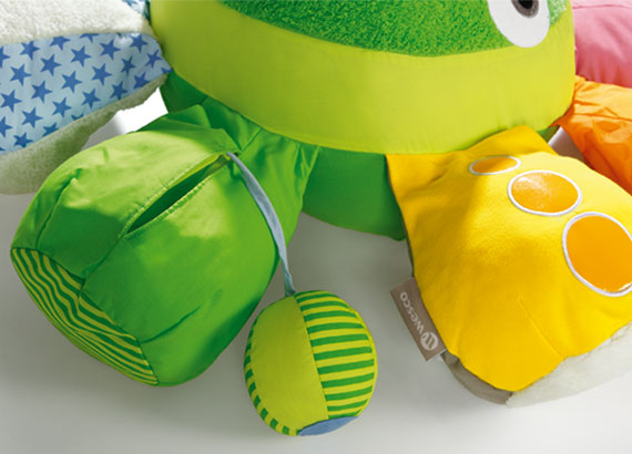 Préhension Ses multiples tentacules aux textures variées comblent la curiosité de Bébé.