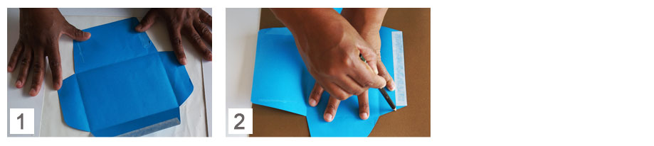 • De enveloppe openen om er een model van te maken en er de vorm van te reproduceren op een vel bristolpapier.