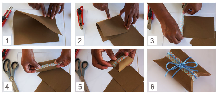 • Het vel weer opnieuw opvouwen en de randen tegen elkaar aan plakken met behulp van de plakband.