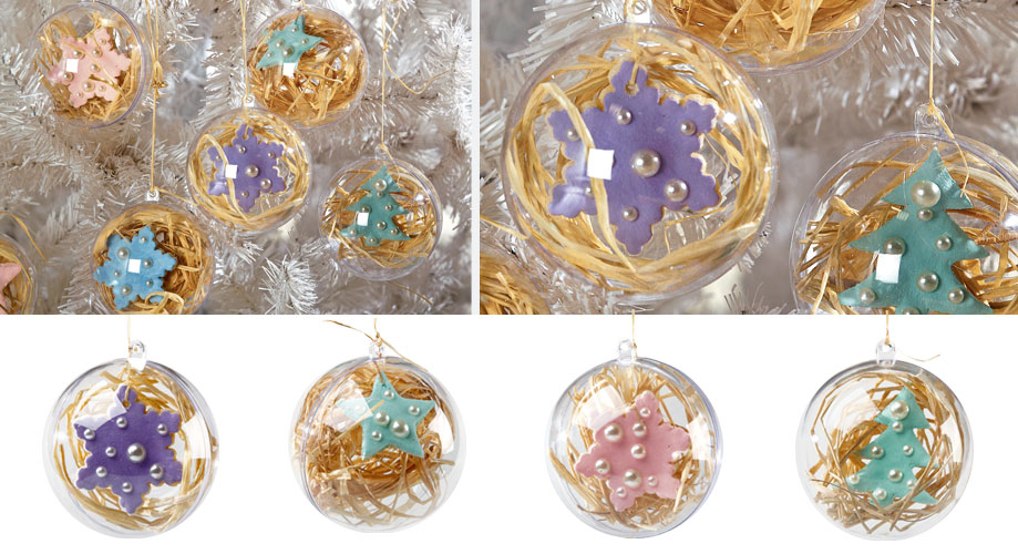 De raffia of de parelmoer parels, evenals de zoutdeegvorm, in de bal plaatsen.