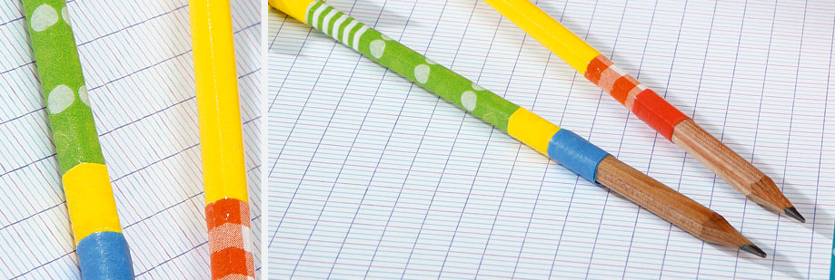 • Kleef de stroken op het potlood.