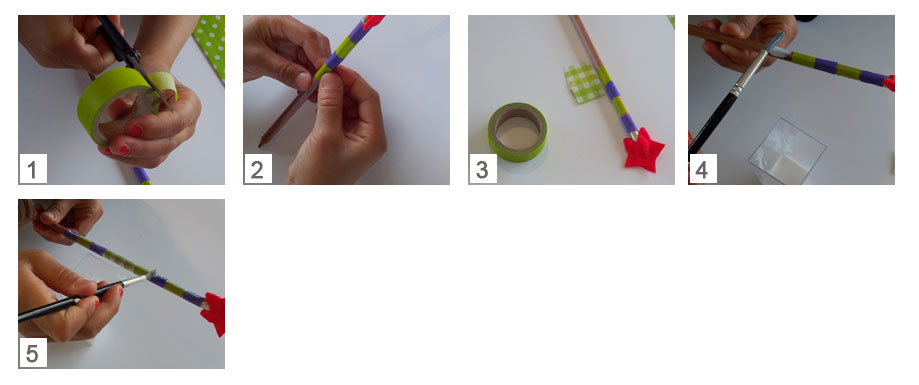 • Wikkel deze stukjes plaklint rond het potlood.