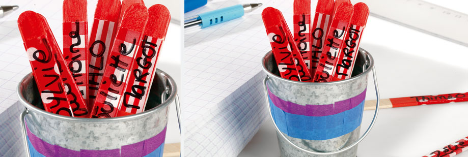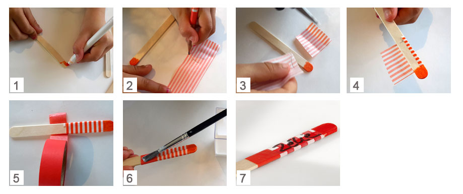 • Maak de versiering af door een plaklint om het stokje te plakken.