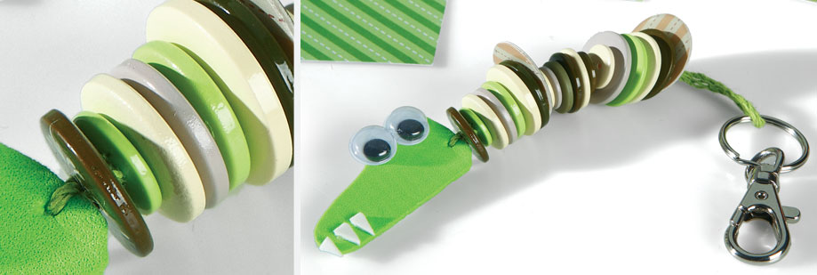 De volgende vorm uit het foamblad knippen, dit wordt het hoofd van de krokodil. Vervolgens 3 kleine driehoekjes uitknippen die de tanden zullen vormen.