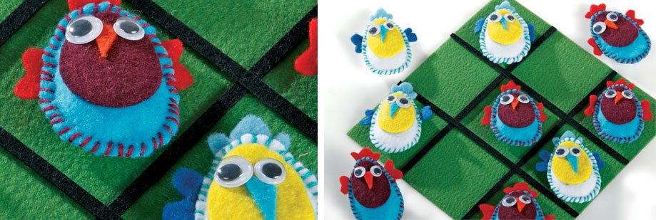 Op elk van de kippetjes de ogen plakken om het spel af te maken.